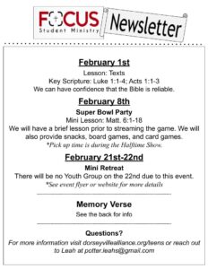 Here at Focus Student Ministry (FSM) our focus is centered on Jesus; He will never steer us wrong. Our goal is to lead our students into a loving relationship with the Lord. We aim to do this by: